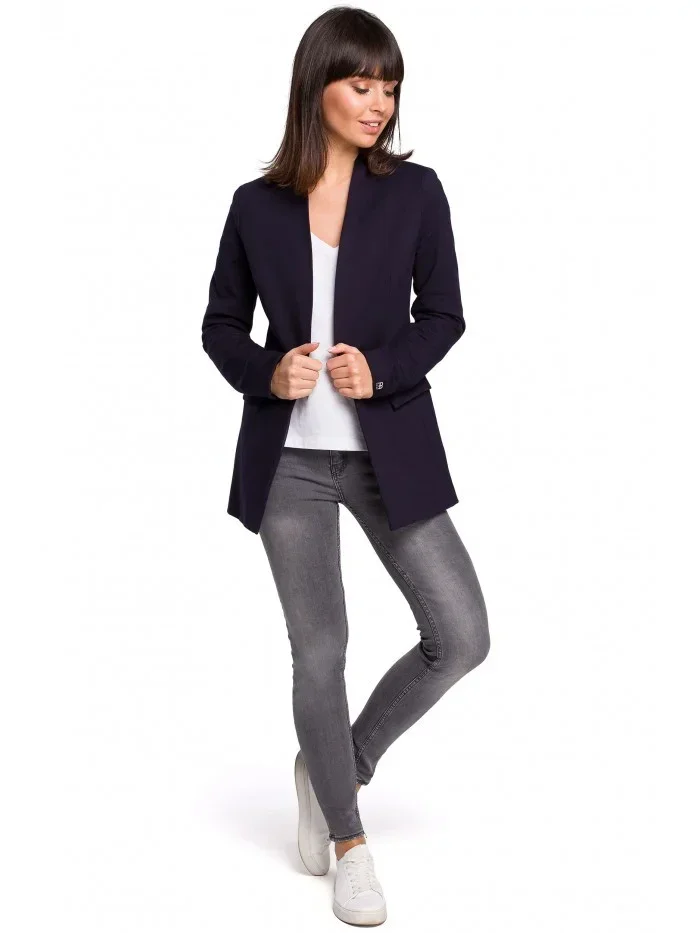 B102 Otevřené sako z bavlněné příze - tmavě modré