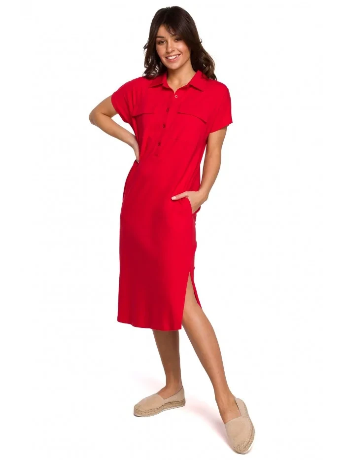B222 Safari šaty s kapsami s klopou - červené