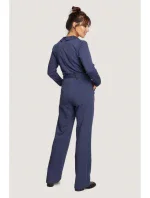 Modrý opasek pro kimona používaná v bojových sportech vyrobený z materiálu, který je směsí polyesteru a bavlny pro odolnost proti oděru a roztržení.