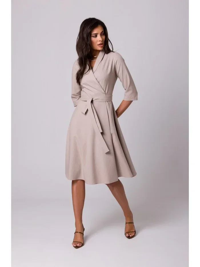 B255 Zavinovací šaty se šálovým límcem - béžové