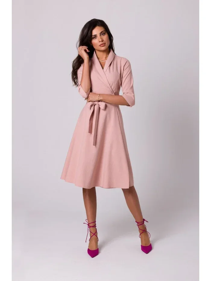 B255 Zavinovací šaty se šálovým límcem - růžové