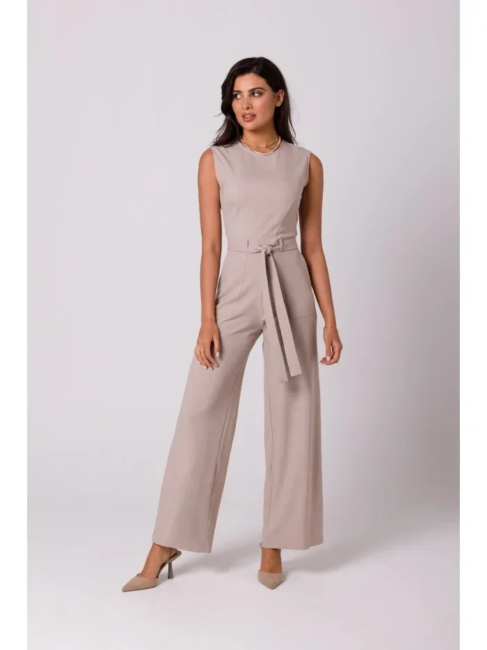 B256 Kombinéza bez rukávů s kapsami - béžová