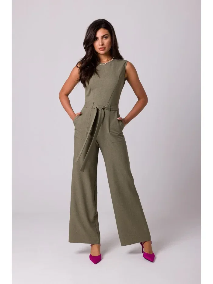 B256 Kombinéza bez rukávů s kapsami - olivová