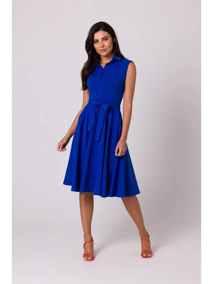 B261 Bavlněné šaty ve fitted střihu - královsky modré