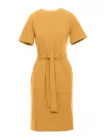 B263 Bavlněné šaty s kapsami - medové