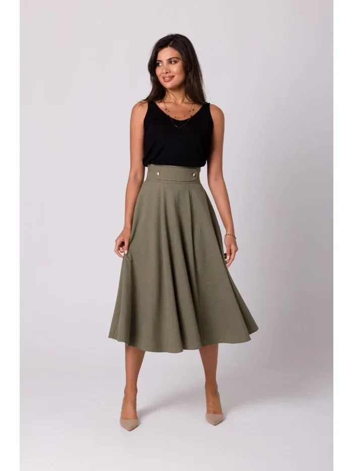 B265 Sukně s vysokým pasem - olivová