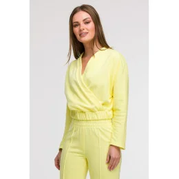Designed and made in Poland FIT & CUT Fit: Loose wrap-style sweatshirt (overlapping front in a V shape), with an elastic waistband that accentuates the silhouette
