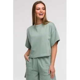 B294 Oříznutá mikina s krátkým rukávem - mátová