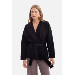 B297 Pletené sako bez límce s otevřenou přední částí - černé