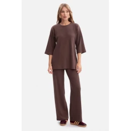 95% bavlna 5% elastan MATERIÁL Materiál: žebrovaný úplet, hmotnost 250 g PODROBNOSTI O VÝROBKU Pas: středně vysoký Zapínání: žádné - elastický pásek Kapsy: žádné Nohavice: dlouhé, rovné, mírně rozšířené Podšívka: žádná Model: B300 Navrženo a vyrobeno v Polsku z materiálu vyrobeného v Polsku Modelka na fotografii měří 171 cm a má na sobě velikost S/M STYL A STŘIH Střih: úpletové kalhoty volného střihu Tvar: vypasované v pase a na bocích, volnější přes nohavice Délka: po celé délce, splývající až na zem