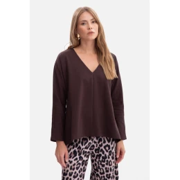 B304 Pletený svetr s výstřihem do V - tmavá čokoláda