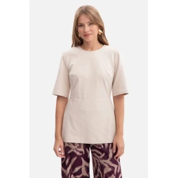 B305 Pletený top s peplum - pískový