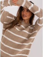 Tmavě béžový kostkovaný svetr s vlnou .