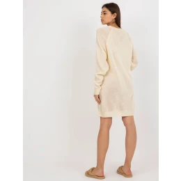 Světle béžové oversize pletené šaty s dlouhými rukávy .