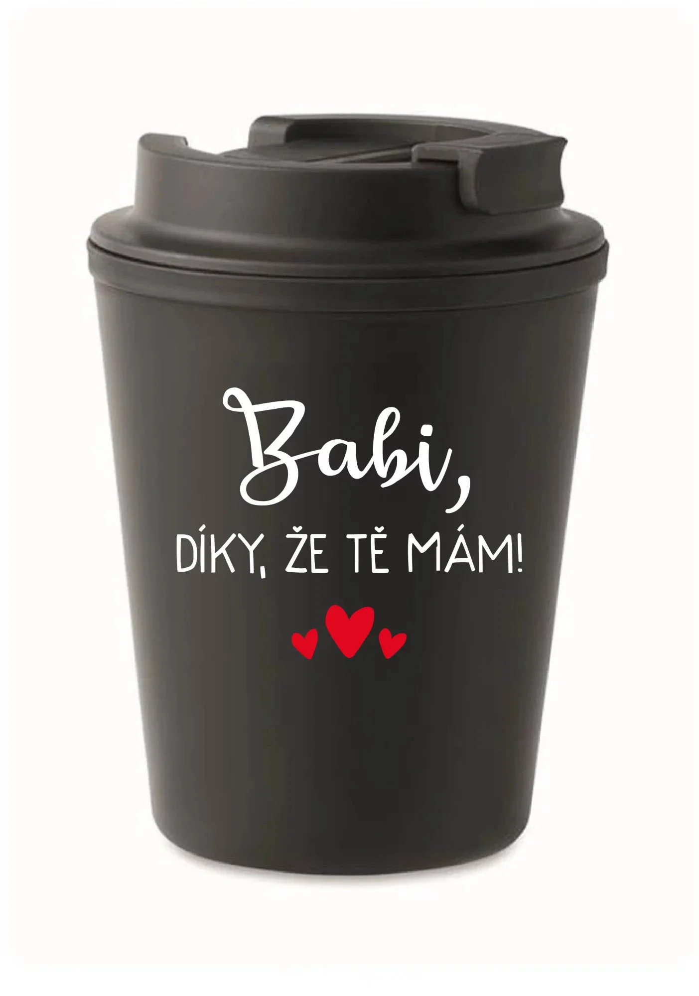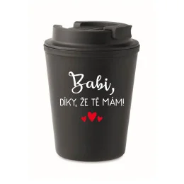 BABI, DÍKY, ŽE TĚ MÁM! - černý termohrnek 300 ml