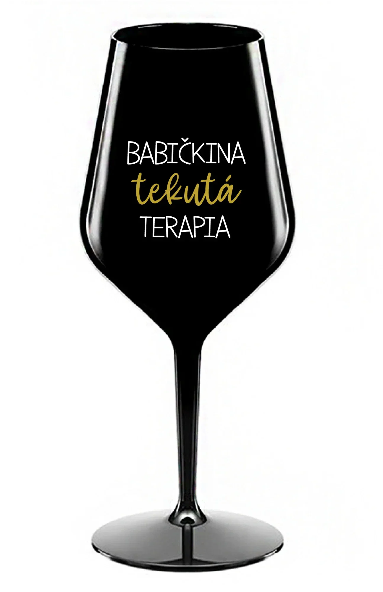BABIČKINA TEKUTÁ TERAPIA - čierny nerozbitný pohár na víno 470 ml