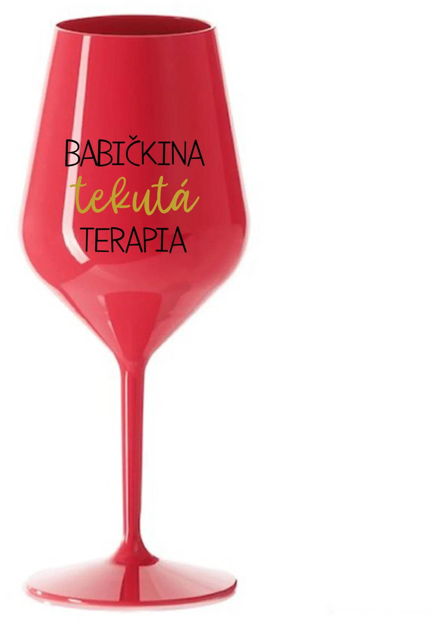 BABIČKINA TEKUTÁ TERAPIA - červený nerozbitný pohár na víno 470 ml