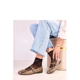 Elegantní baleríny se zapínáním na pásek, vyrobené z vysoké kvality ekologické kůže, které kombinují klasickou eleganci s módním akcentem. Model je zdoben zvířecím vzorem hada a ozdobnými perlami, které dodávají celku jemný ženský šarm. Boty mají čtvercový špičák a plochý podpatek, který poskytuje pohodlí a stabilitu po celý den. Zapínání na pásek zaručuje dokonalé přizpůsobení noze a vložka z ekokůže zvyšuje komfort používání. Jsou to klasické baleríny v moderním provedení, ideální jak pro každodenní stylizace, tak i elegantní outfity.