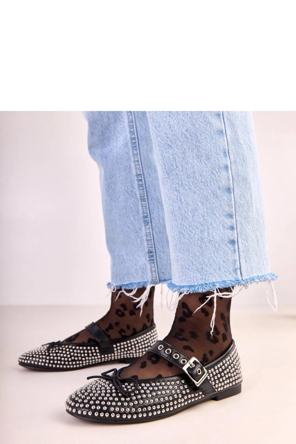 Půvabné baletky se zapínáním na sponu, vyrobené z vysoce kvalitní ekologické kůže, které spojují klasický styl s módními detaily. Model je zdobený jemnými nýty a mašlí na špičce, dodávající celkově dívčímu šarmu a modernímu charakteru. Boty mají kulatou špičku a vložku z ekokože, která zajišťuje pohodlí při nošení. Klasický střih z nich dělá skvělý doplněk jak k běžným, tak k elegantnějším outfitům. Je to nabídka pro ženy, které ocení pohodlí, decentní eleganci a stylové detaily.