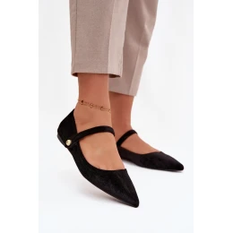 Sametové dámské baletky jsou elegantním návrhem, který spojuje pohodlí s módním vzhledem. Model se vyznačuje špičatými špičkami, které opticky zjemňují nohy a dodávají celku ženský charakter. Na nártu je pásek s suchým zipem, zdobený zlatým detailom, který nejen představuje stylový prvek, ale také zajišťuje lepší stabilitu při chůzi. Měkká sametová struktura materiálu dodává luxusní vzhled. Je to ideální volba pro ženy, které ocení decentní eleganci a pohodlí v každodenním provedení.