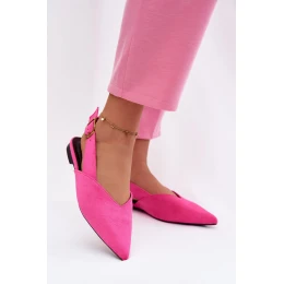 Elegantní dámské baleríny z ekosuede jsou elegantní a pohodlnou volbou na každý den i na speciální příležitosti. Špičatý nos jim dodává moderní charakter a opticky prodlužuje nohu. Nastavitelný popruh se zlatou přezkou umožňuje ideální přizpůsobení bot k noze a zároveň představuje elegantní detail. Tento model skvěle doplní jak každodenní, tak elegantní stylizace.