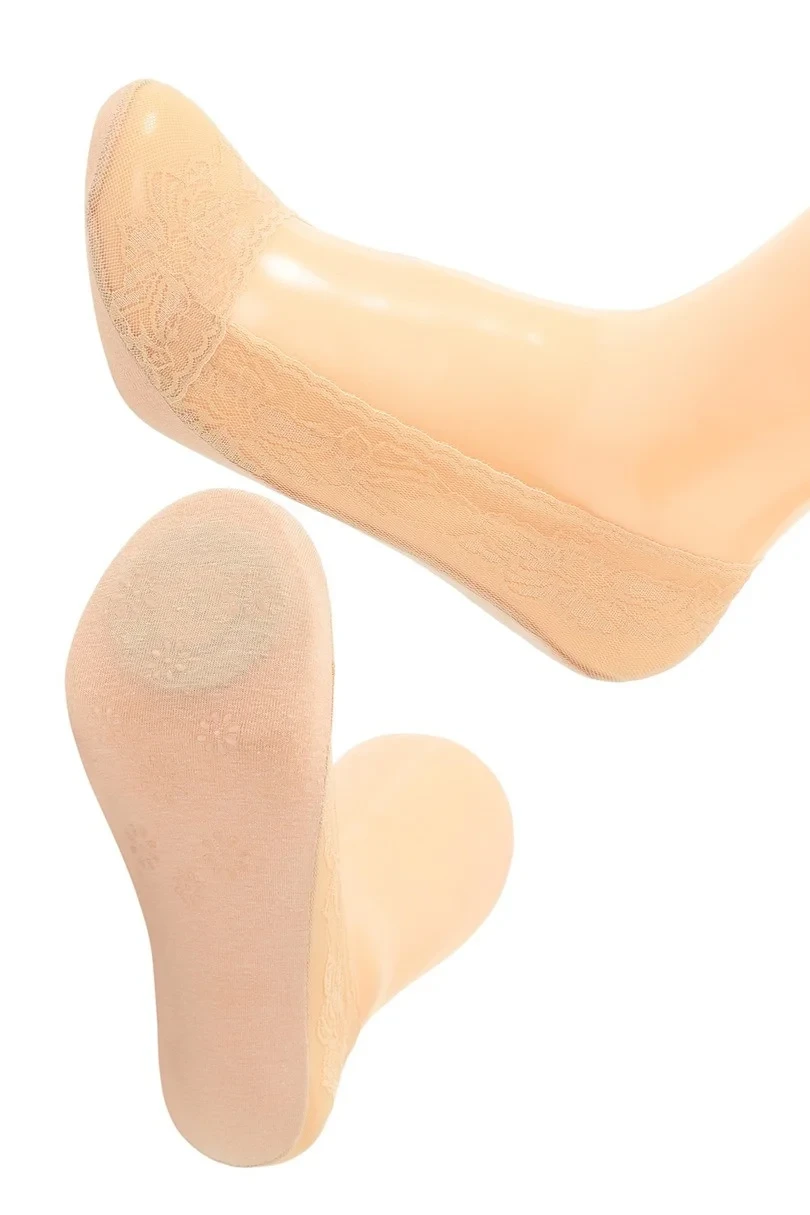 Dámské šněrovací baleríny s abs a silikonem kolem chodidla. Složení: vrchní část-70 % nylon, 30 % elastan; spodní část-70 % bavlna, 15 % polyester, 15 % elastan