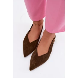 Stylové dámské baleríny z eko semiše jsou elegantní a pohodlnou volbou na každý den i na výjimečné příležitosti. Špičaté špičky jim dodávají moderní vzhled a opticky zeštíhlují nohu. Nastavitelný pásek zapínaný na zlatou sponu umožňuje ideálně přizpůsobit boty noze a zároveň tvoří elegantní detail. Tento model skvěle doplní jak casualové, tak i elegantnější outfity. Při výběru velikosti se řiďte tabulkou velikostí.