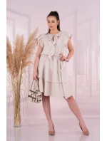 Pohodlné, ležérní šaty s ozdobným, asymetrickým zapínáním na knoflíky po celé délce. Bez rukávů, s jemným výstřihem. Zavazování v pase pro lichotivý a ženský vzhled. Dvě kapsy na bocích. Složení: 95 % polyester, 5 % elastan.