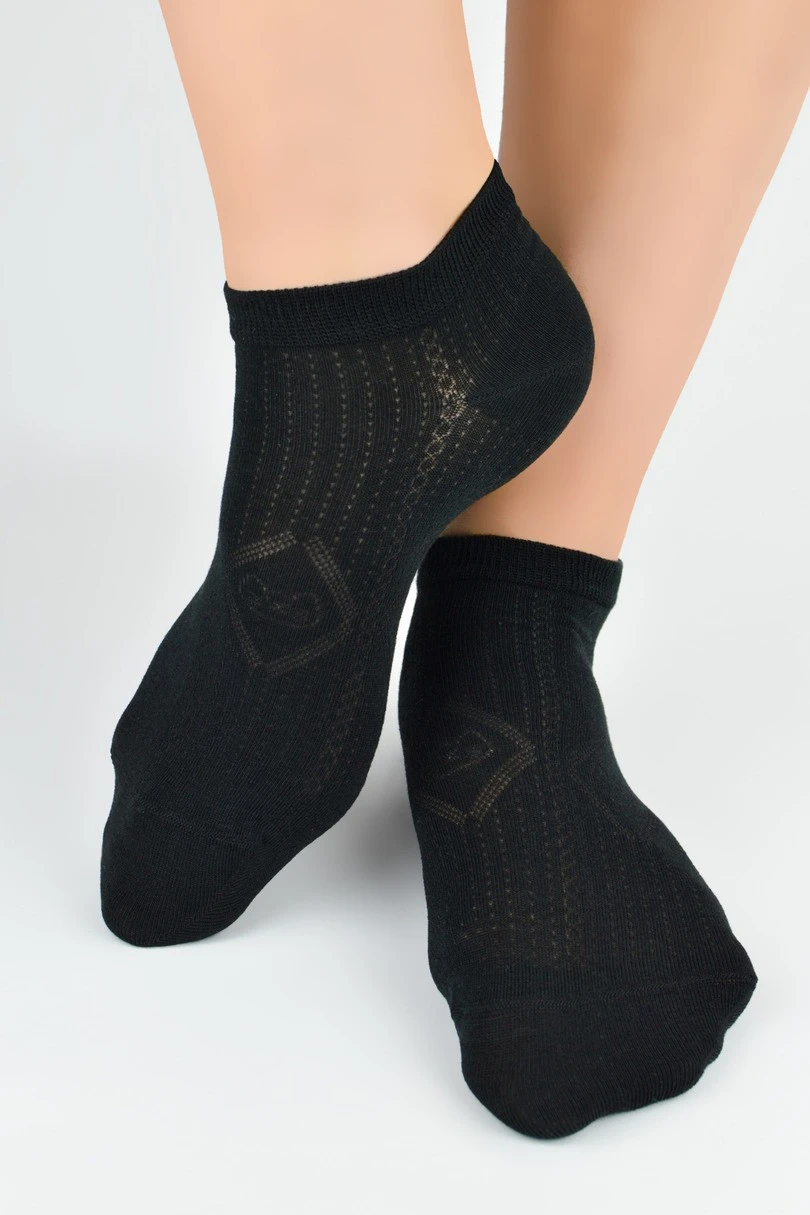 Model ST108 se vyznačuje jemnými vzory, které ponožkám dodávají decentní, stylový charakter. Ploché švy minimalizují riziko odřenin a podráždění a zaručují vysoký komfort nošení - a to jak při každodenním nošení, tak při dlouhém dni v práci. Ponožky se skvěle hodí k teniskám, cvičkám a sportovní obuvi.