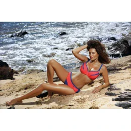 Kalhotky jsou mírně vyšší, vpředu jsou podšité, s kontrastním lemováním. Vypadají skvěle a jistě vám poskytnou pohodlí, po kterém na pláži toužíte.
