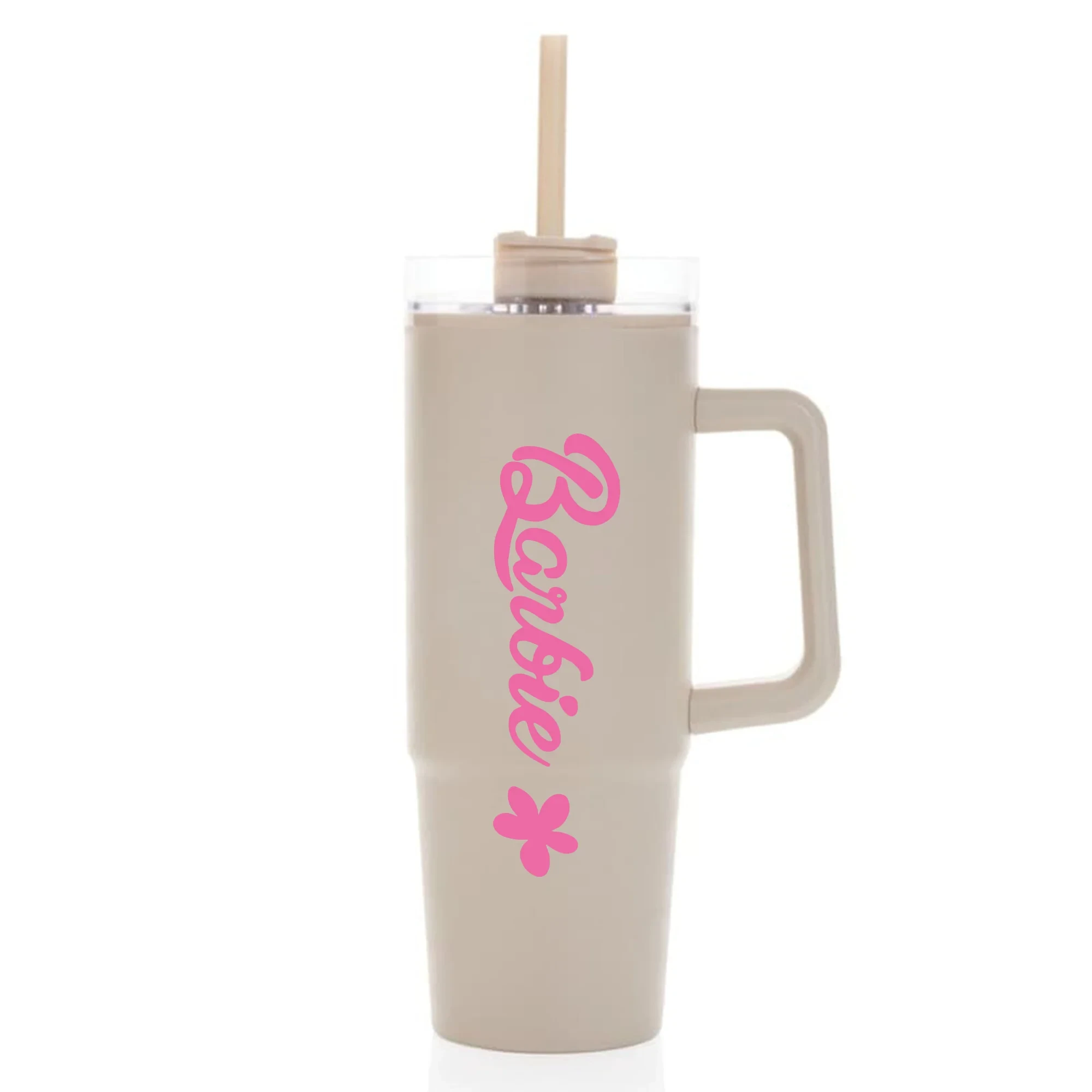 BARBIE - béžový cestovní hrnek s průhledným víčkem 900 ml