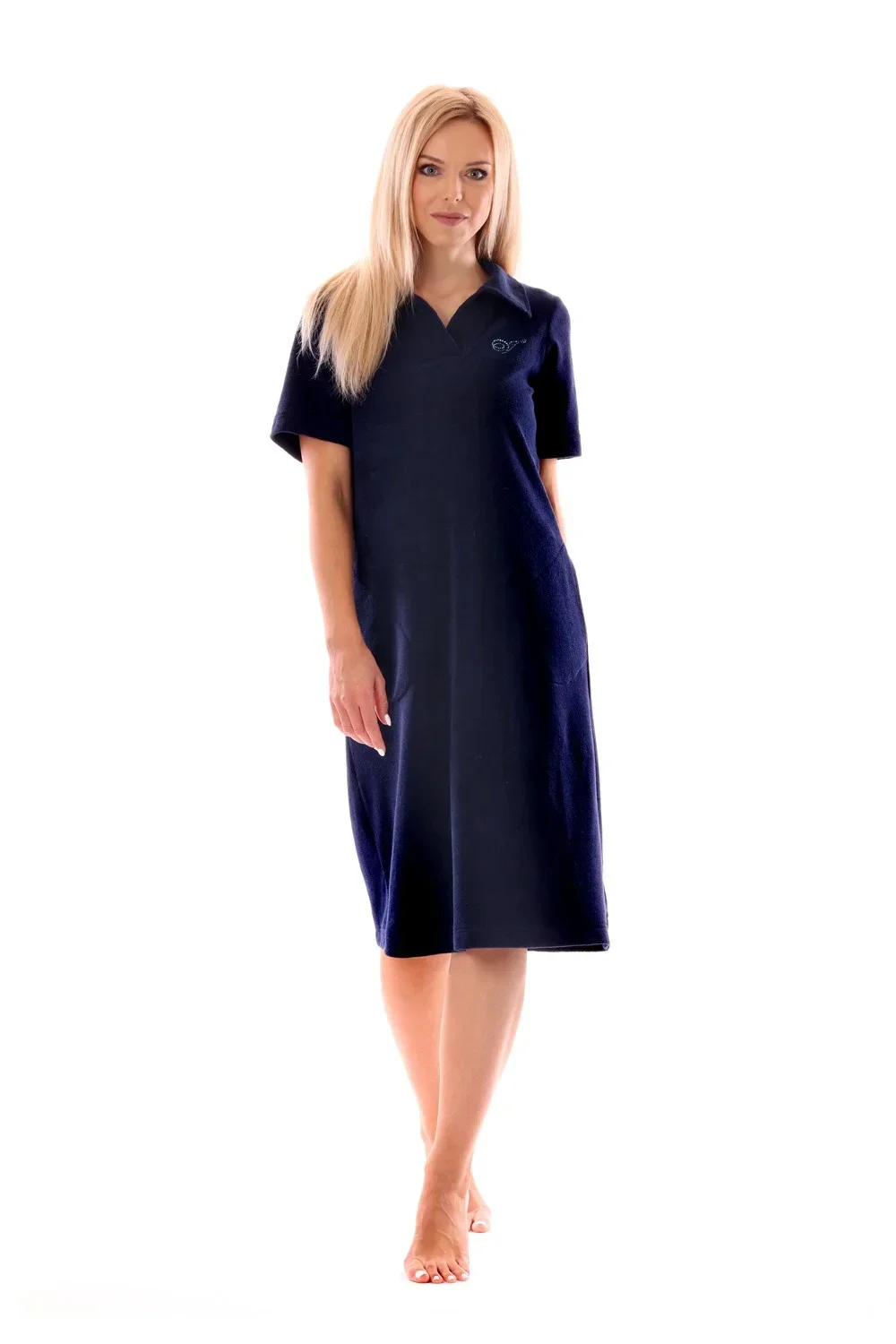 Představujeme vám stylové lehké froté šaty s elegantním límečkem, které přinášejí dokonalou kombinaci pohodlí a elegance. Šaty jsou ušité z lehkého úpletového bavlněného froté materiálu s vysokým podílem bavlny. Díky tomu jsou velmi příjemné na omak a pohodlné na nošení. Sportovní look doplněný praktickým límečkem dodává šatům svěží a dynamický vzhled. Kapsy v bočních švech jsou naprostou nezbytností. Pohodlný střih zajišťuje volnost pohybu a maximální komfort při nošení. Tyto šaty jsou perfektní volbou pro ty, kteří hledají stylový a funkční oděv zajišťující pohodlí. Dopřejte si pocit sportovní elegance s těmito kvalitními froté šaty. Ať jdete k vodě, nebo na golfové hřiště, šaty Bari zajistí, že se budete nejen skvěle cítit, ale také skvěle vypadat.