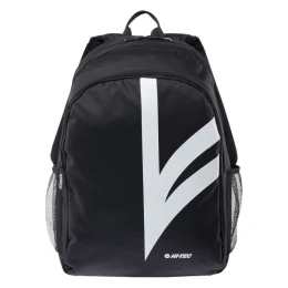 Městský černý batoh SKIPTON od společnosti Hi-Tec má prostornou hlavní komoru na zip, do které můžete zabalit notebook většího formátu nebo aktovku. Další kapsa na přední straně pojme další potřebné drobnosti. Do dvou bočních kapes ze síťoviny můžete zabalit termohrnek nebo láhev na vodu. Celek doplňuje velké logo značky.
