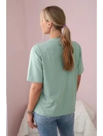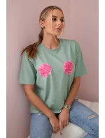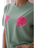 Bavlněná halenka s květinovým potiskem tmavá máta