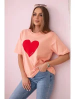 Bavlněná halenka s potiskem srdce losos