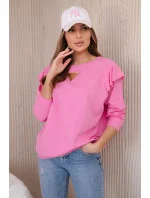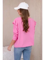 Bavlněná halenka s volánky na ramenou světle růžová