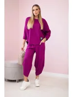 Bavlněná mikina kalhoty set švestka
