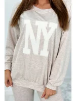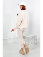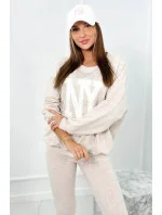 Bavlněná souprava, zateplená mikina + legíny světle béžová