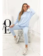 Bavlněná mikina s kapucí + legíny modrý