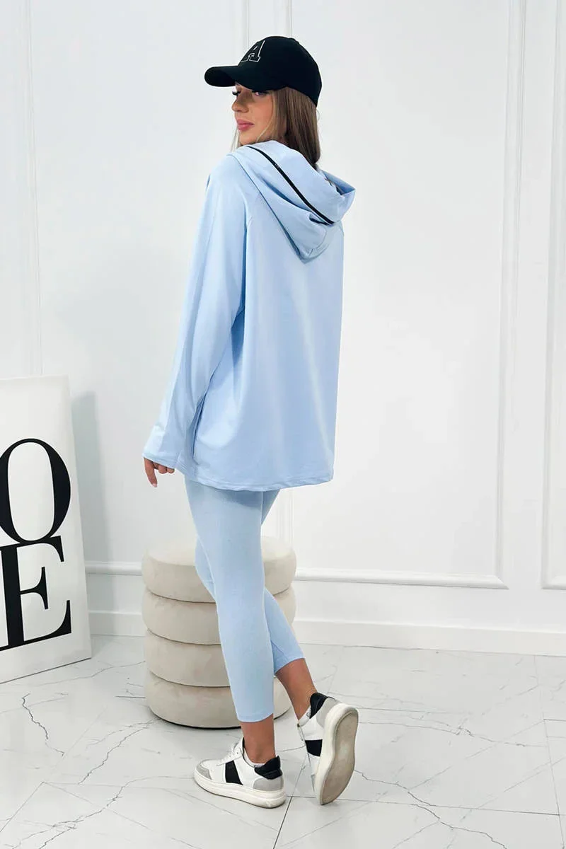 Bavlněná mikina s kapucí + legíny modrý