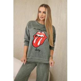 Bavlněná souprava otřená potiskem teplákové + kalhoty khaki