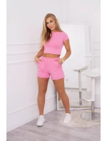 Bavlněná souprava se šortkami růžová