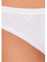 Dámské bavlněné kalhotky značky Lovelygirl. Dámské kalhotky - tanga nižšího střihu v bílé nebo černé barvě jsou vyrobeny z bavlny a ze 100% celulozového vlákna modal (přírodní vlákno v základu vyráběné z bukového dřeva), které dodává látce dokonalou pružnost, jemnost a hedvábný lesk. Tato látka má dokonalou nasákavost a schopnost rychle odvádět pot od povrchu těla, což oceníte při celodenním nošení. Přední část je vyrážena plastickým květinovým vzorem, zadní část je zcela hladká. Boky kalhotek zdobí úzký elastický proužek látky. Uvnitř kalhotek je vsazený bavlněný klínek. Tento model kalhotek je dokonale jemný a velmi příjemný na dotek.