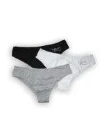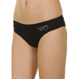 Dámské brazilky značky Lovelygirl. Velmi oblíbené brazilky v bílé, šedé nebo černé barvě jsou vyrobeny z bavlny a modalu (přírodní vlákno v základu vyráběné z bukového dřeva, které dodává látce dokonalou pružnost, jemnost a hedvábný lesk, a ani při opakovaném praní kalhotky neztrácí tyto užitné vlastnosti). Vlákno modalu má dokonalou nasákavost a schopnost rychle odvádět pot od povrchu těla, což oceníte při celodenním nošení. V přední části mají brazilky nažehlené blyštivé kamínky loga LOVELYGIRL. Zadní část kalhotek je prostřižena a dokonale sedí na zadečku. Uvnitř kalhotek je vsazen bavlněný klínek. Kalhotky jsou na dotek hladké a velmi příjemné.