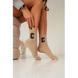 Bavlněné Dámské Ponožky S Písmenem C Béžové