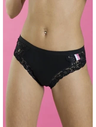 Dámské bavlněné kalhotky vyššího střihu značky Slight. Přední část je na bocích a okrajích kombinována s elastickou krajkou s jemným květinovým vzorem. Materiálové složení: 45% bavlna, 45% modal, 10% elastan