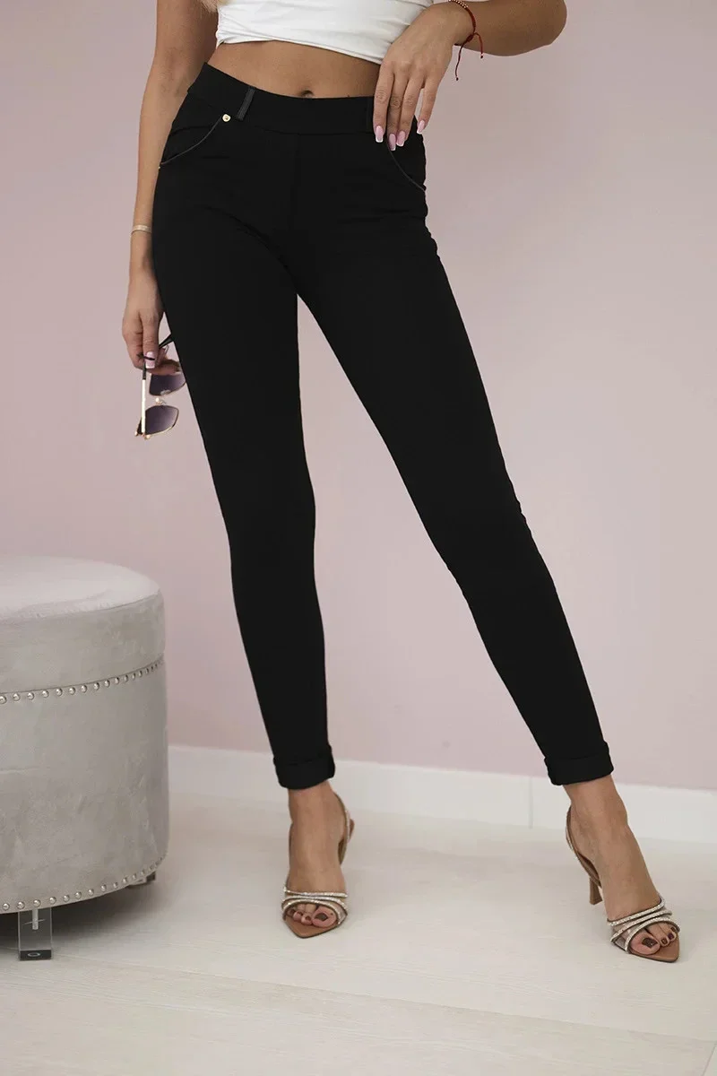 Bavlněné kalhoty s lemem na kapsách černé