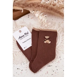 Bavlněné žebrované ponožky s medvídkem – čokoládové