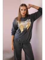 Bavlněný komplet Angel teplákové + kalhoty Grafit