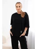 Italská souprava je kombinací elegance a pohodlí, která se dokonale hodí k mnoha příležitostem. Tato látka je nejen měkká a příjemná na dotek, ale také krásně vypadá. Halenka je dokonalým kouskem oblečení jak na každý den, tak na zvláštní příležitosti. Můžete jej nosit samostatně nebo kombinovat s jiným kouskem oblečení a vytvořit tak mimořádně stylový outfit. Kalhoty jsou perfektním doplňkem soupravy. Jejich volný střih umožňuje volnost pohybu, díky čemuž jsou nejen stylové, ale také velmi pohodlné. Při výběru kalhot volíte pohodlí a eleganci v jednom. Italský set je vynikající volbou pro ty, kteří oceňují vysokou kvalitu a jedinečný styl. Ať už jdete na schůzku s přáteli, do práce nebo na večer, s touto sadou budete jistě vyčnívat z davu. Velikost je univerzální a padne ženám, které nosí velikost S, M nebo L.